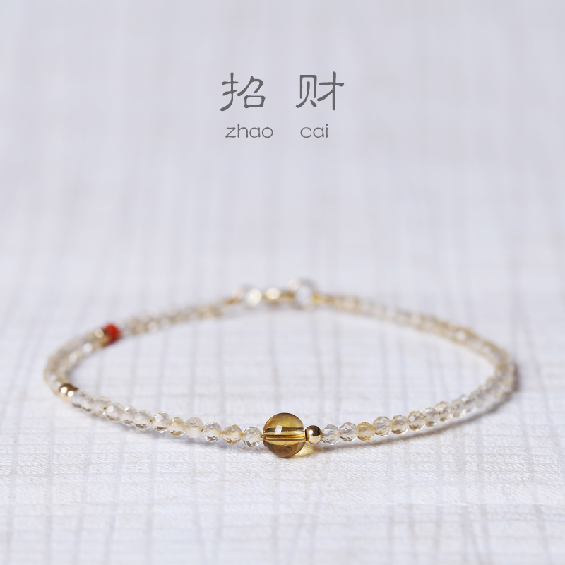 招财一夜暴富极细2mm黄水晶手链女14k转运珠超细夏设计感小众ins热门设计联盟服务商