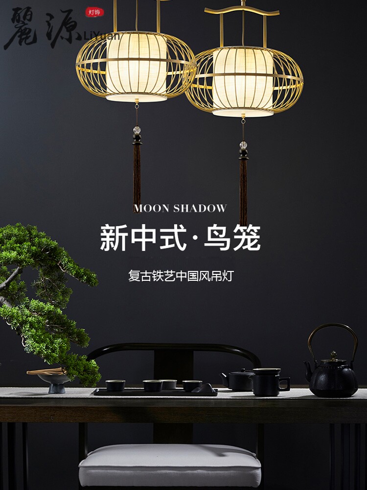 新中式复古鸟笼吊灯金色餐厅玄关会所茶楼卧室阳台火锅店灯笼灯具热门设计联盟服务商