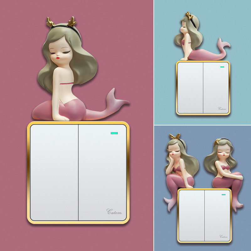 3d立体树脂插座贴美人鱼开关贴卡通风插座装饰贴室内墙贴热门设计联盟服务商