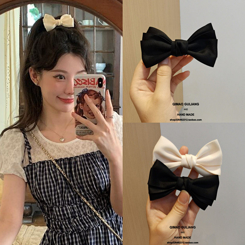 网红美蟹同款迷你蝴蝶结奶白色高马尾发夹可爱百搭黑色复古发饰女热门设计联盟服务商